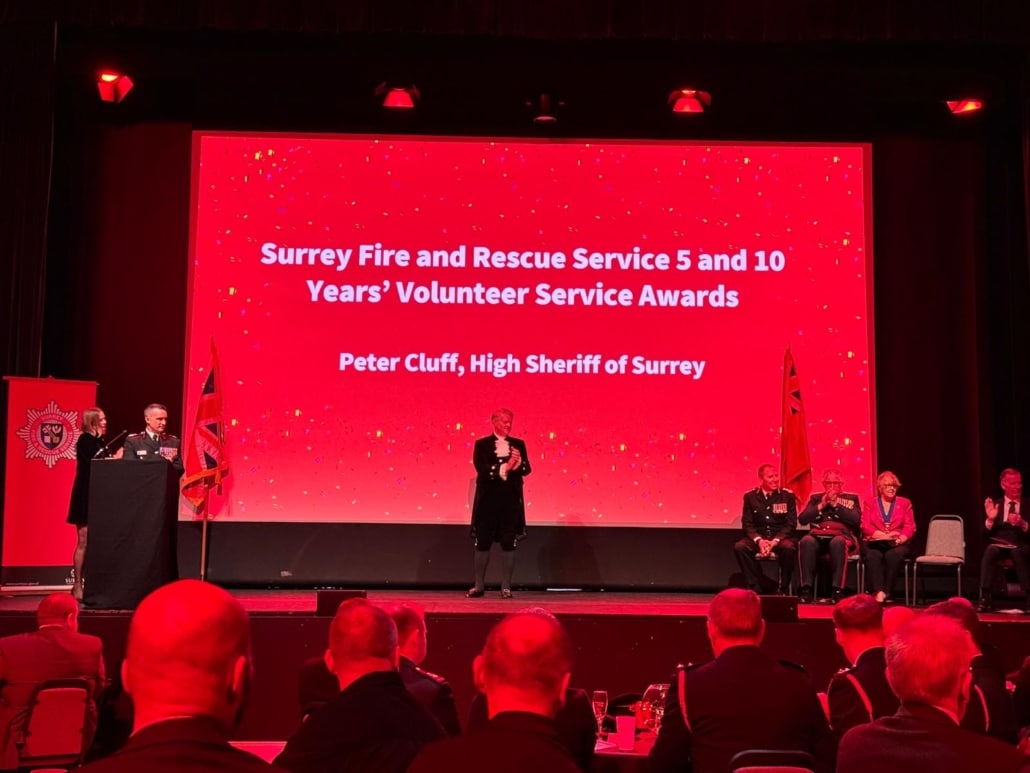 I was delighted to part of the awards team which also included Deputy Lord Lieutenant, Andrew Latham, Chief Fire Officer, Dan Quin, Vice-Chair of Surrey County Council, Bernie Muir, and the Cabinet Member for Surrey Fire and Police and Resilience, Kevin Deanus. I was also kept on my toes by being informed I was making a speech only after I had arrived, but fortunately I was provided with some words of wisdom to help me thank those present for their unwavering commitment. Awards were given for years of service and meritorious actions and conduct. Dan Quin said that they were not just a service but a community and acknowledged the families and loved ones also present and the dedication of all the teams from frontline firefighters, control room staff, support teams, volunteers and everyone who plays a part in keeping Surrey safe.