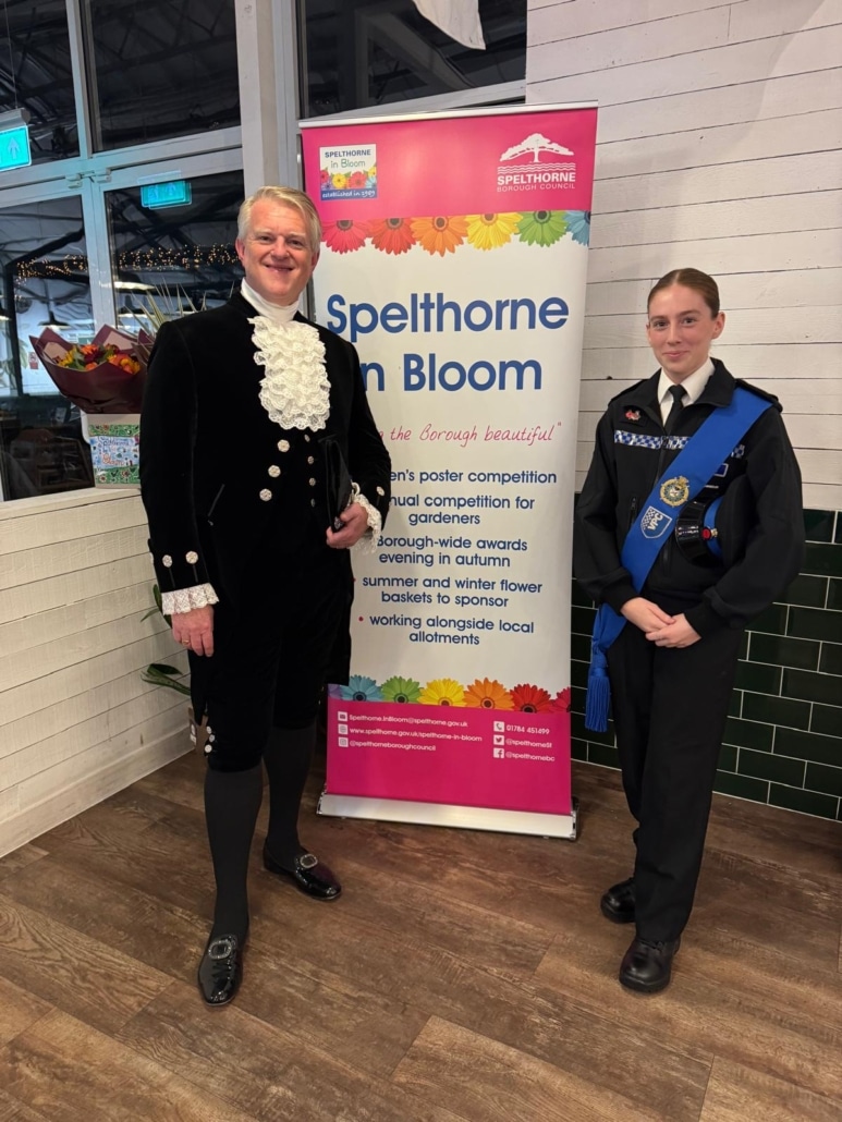 One of my early engagements as High Sheriff was to attend the launch of this year’s Spelthorne in Bloom competition back in April. So some seven months later, Suzanne and I were delighted to return for the results with Grace one of my Police Cadets.