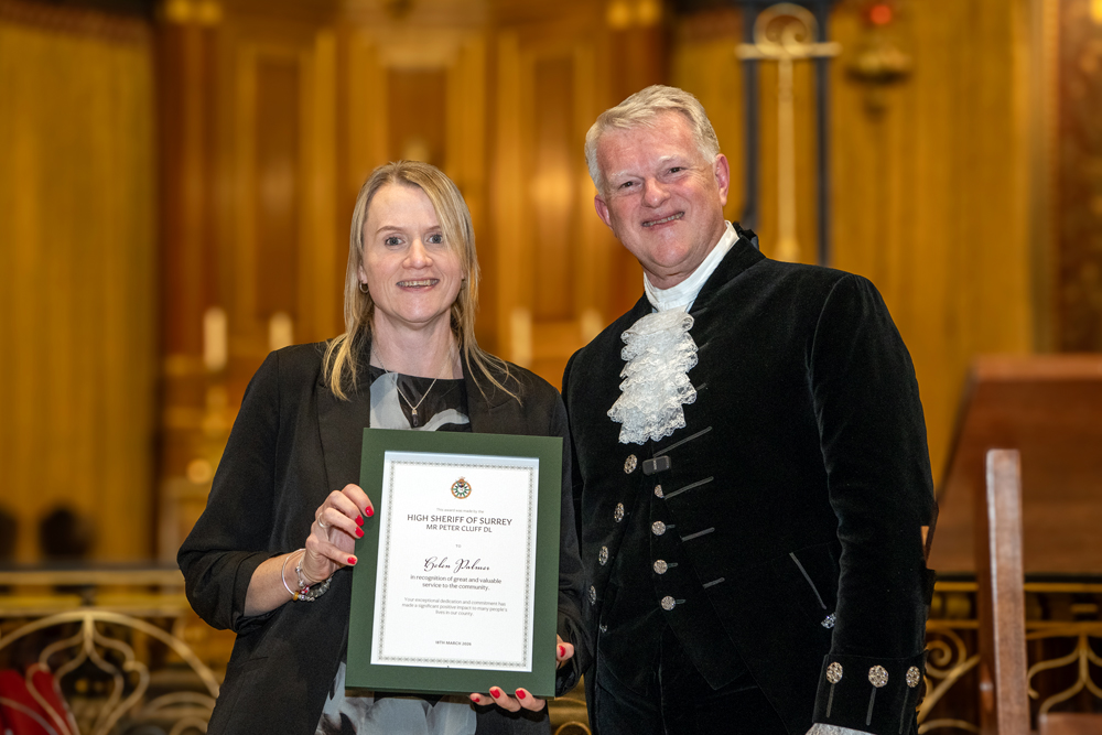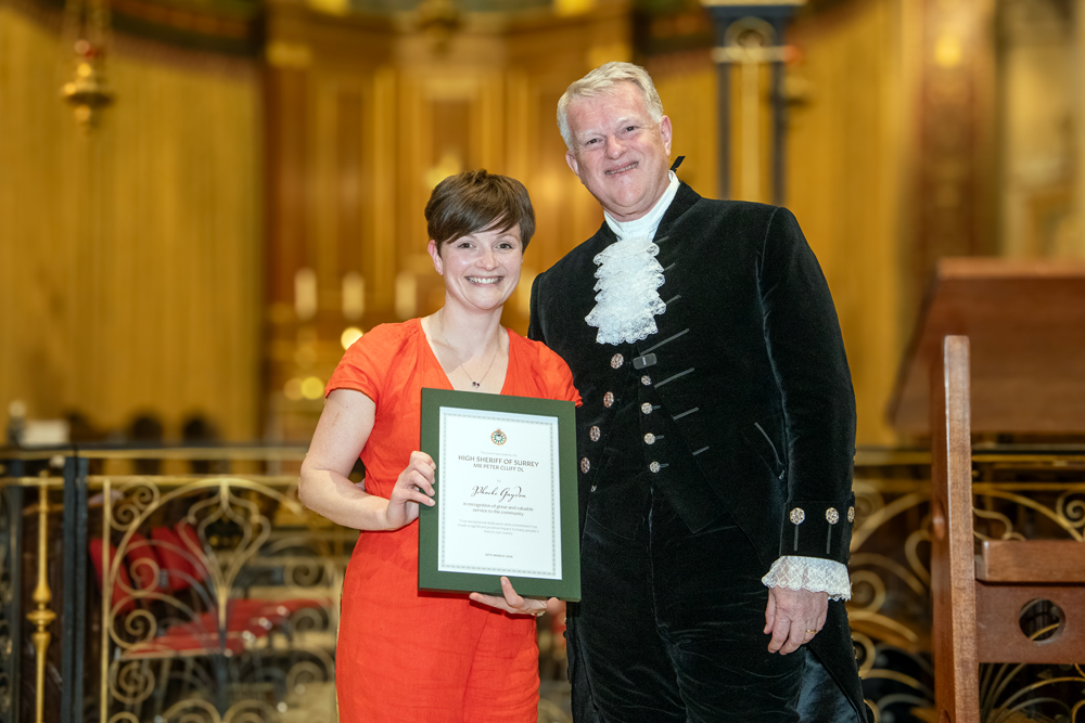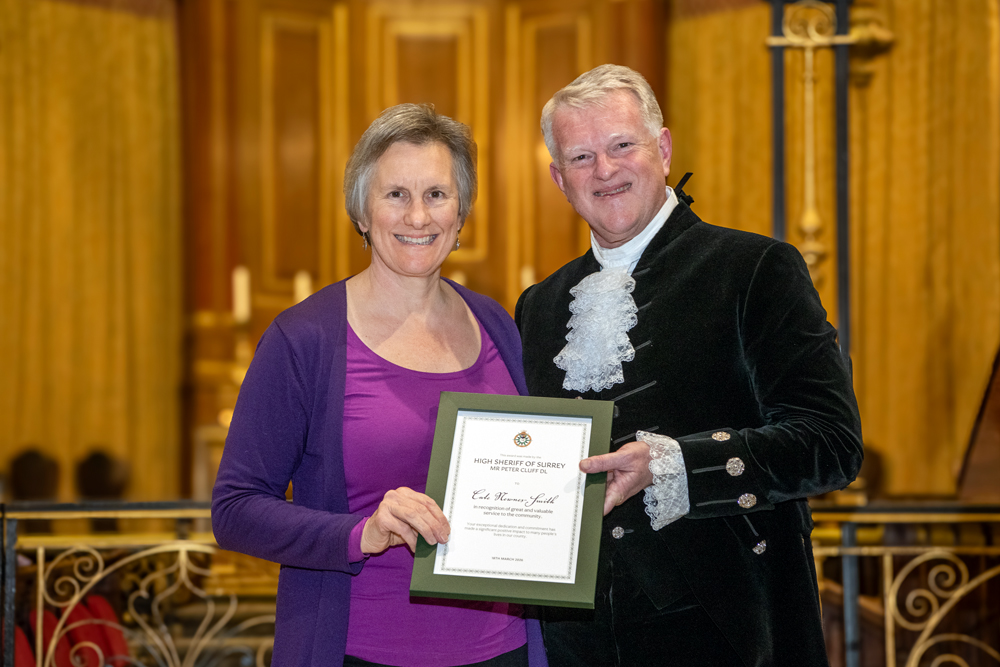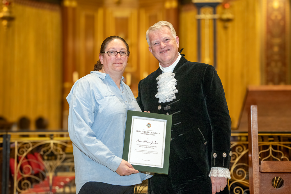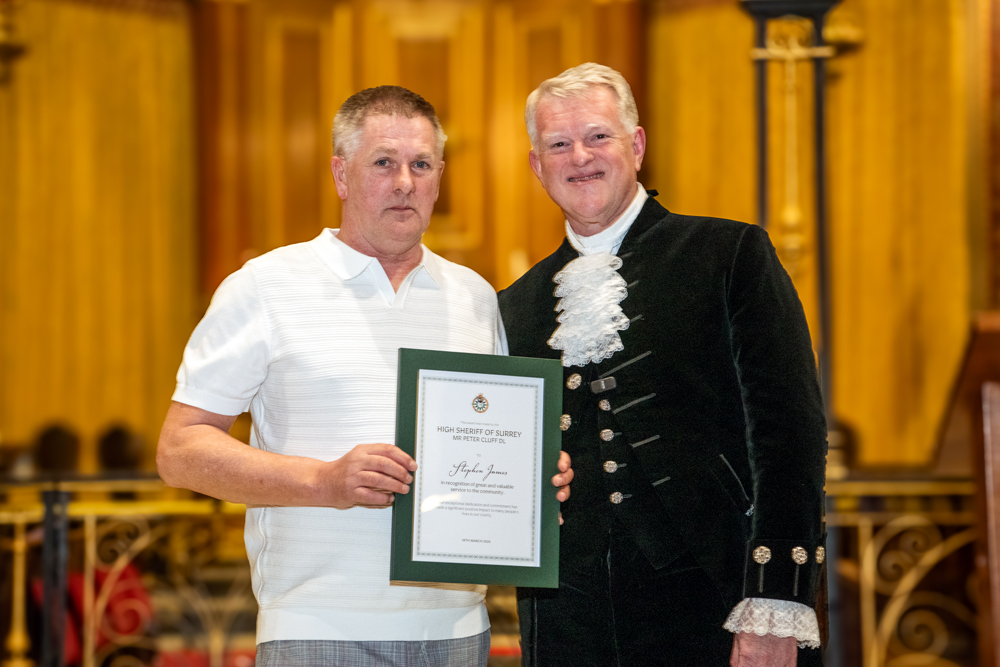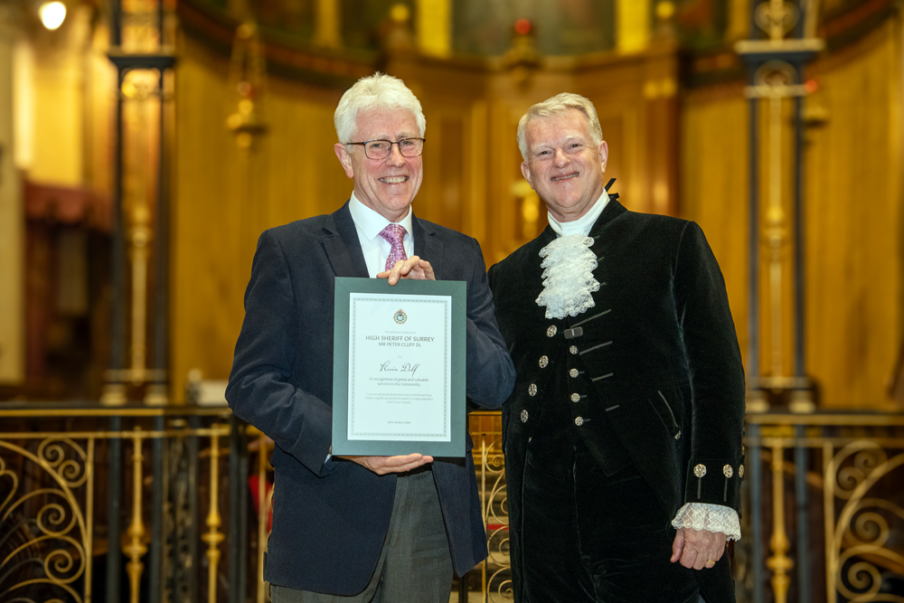 As I approached the end of my term in office and looked back at the places I have visited and the people I met, I realised how difficult it was going to be to select those deserving of a High Sheriff Award. In truth I probably could have filled the sizeable Holy Trinity Church on Guildford’s High Street several times over with deserving people; but in the end I was thrilled to hand out 38 awards. I also had the privilege of presenting a special award to ‘Edge of Change’ on behalf of National Crimebeat.