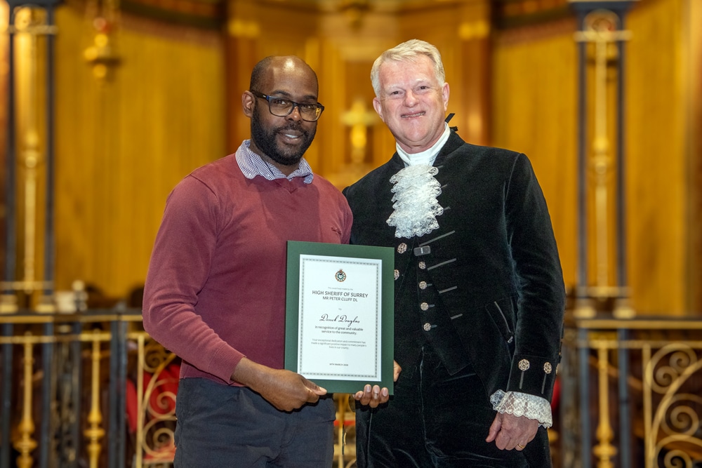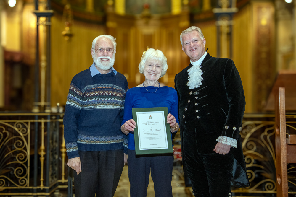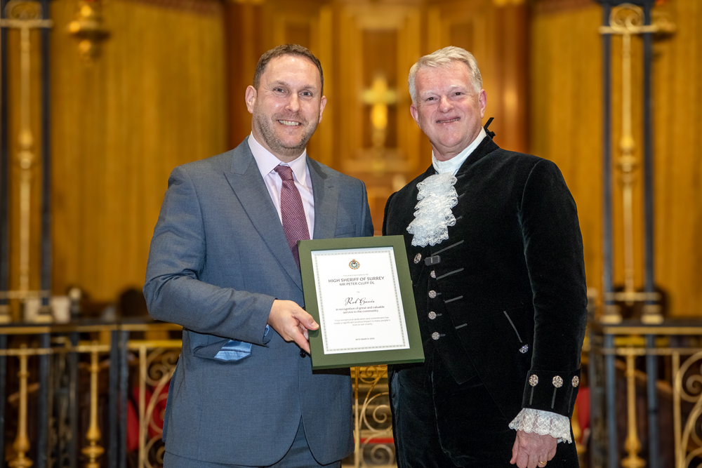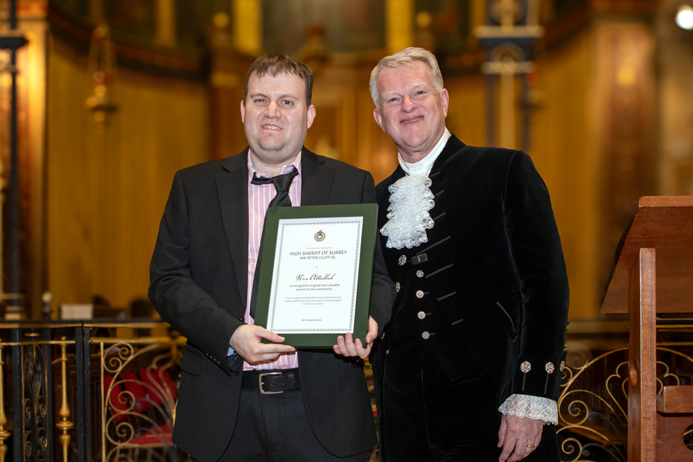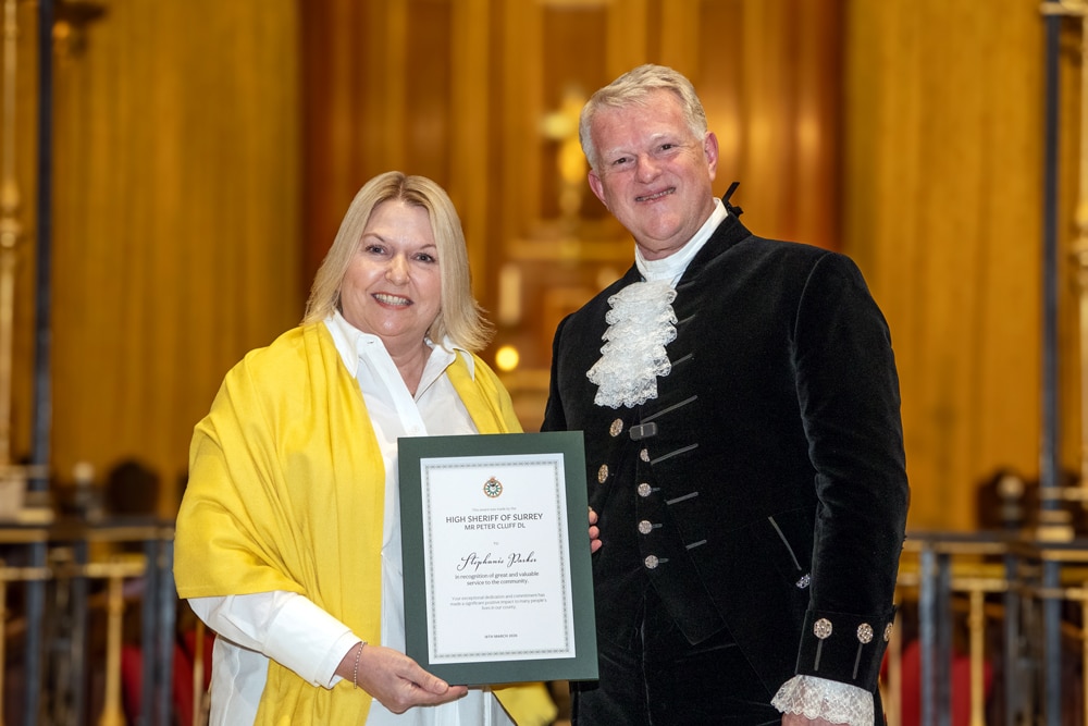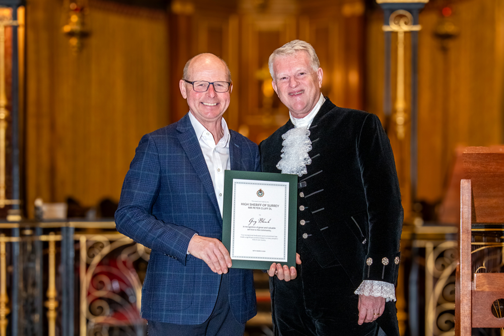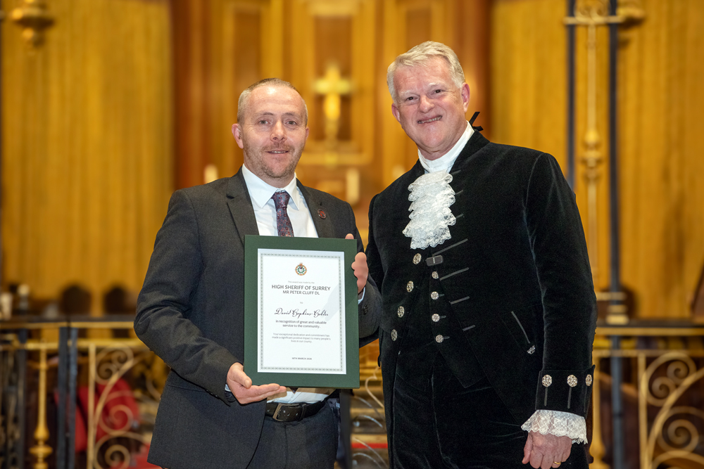 As I approached the end of my term in office and looked back at the places I have visited and the people I met, I realised how difficult it was going to be to select those deserving of a High Sheriff Award. In truth I probably could have filled the sizeable Holy Trinity Church on Guildford’s High Street several times over with deserving people; but in the end I was thrilled to hand out 38 awards. I also had the privilege of presenting a special award to ‘Edge of Change’ on behalf of National Crimebeat.
